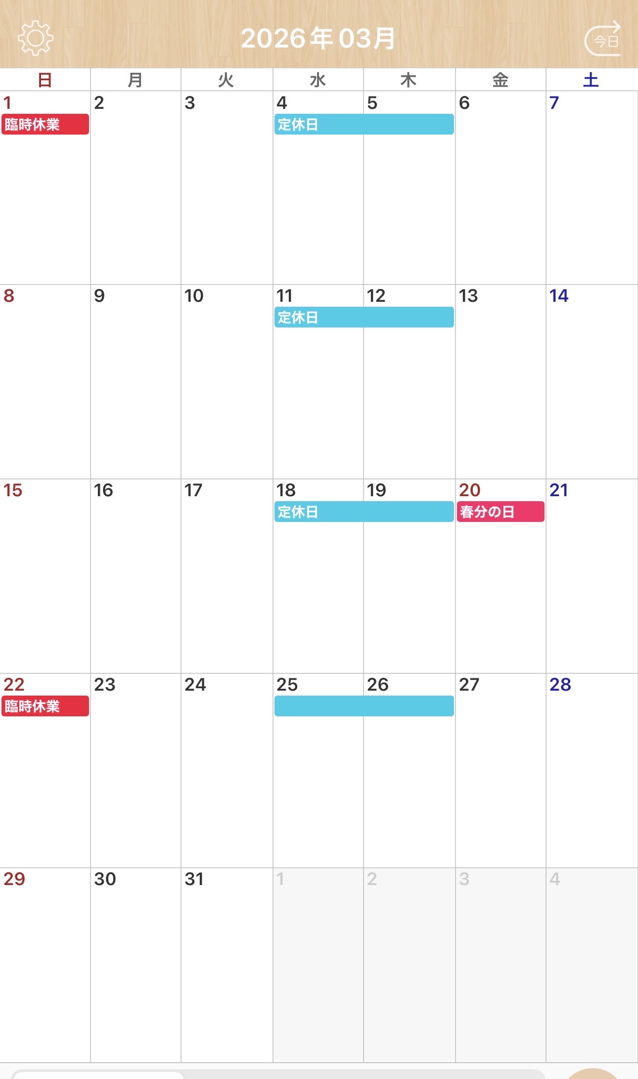 2026年2月 3月の営業日のお知らせ 2026年2月15日 3月の営業日のご案内 春の訪れが待ち遠しい季節となりました。 いつも当店をご愛顧いただき、誠にありがとうございます。 3月の営業についてお知らせいたします。 通常の定休日に加え、誠に勝手ながら下記の日程を終日臨時休業とさせていただきます。 • 3月1日(日) • 3月22日(日) お客様にはご不便をおかけいたしますが、何卒ご了承くださいますようお願い申し上げます。 皆様のご予約を心よりお待ちしております。 ご予約 お問い合わせはお電話で 0748224381 Screenshot 2026年2月 月 火 水 木 金 土 日 1 2345678 9101112131415 16171819202122 232425262728 « 1月 カテゴリー 未分類 最近の投稿 3月の営業日のお知らせ 2月の営業日のお知らせ 新たな取り組み 年始営業開始日変更のお知らせ 今年も1年ありがとうございました 検索: アーカイブ 2026年2月 2026年1月 2025年12月 2025年11月 2025年10月 2025年9月 2025年8月 2025年7月 2025年6月 2025年5月 2025年4月 2025年3月 2025年2月 2025年1月 2024年12月 2024年11月 2024年10月 2024年9月 2024年8月 2024年7月 2024年6月 2024年5月 2024年4月 2024年3月 2024年2月 2024年1月 2023年12月 2023年11月 2023年10月 2023年8月 2023年7月 2023年6月 2023年4月 2023年3月 2023年2月 2023年1月 2022年12月 2022年11月 2022年10月 2022年9月 2022年8月 2022年7月 2022年6月 2022年5月 2022年4月 2022年3月 2022年2月 2022年1月 2021年12月 2021年11月 2021年10月 2021年9月 2021年8月 2021年7月 2021年6月 2021年5月 2021年4月 2021年3月 2021年2月 2021年1月 2020年12月 2020年11月 2020年10月 2020年9月 2020年8月 2020年7月 2020年6月 2020年5月 2020年4月 2020年3月 2020年2月 2020年1月 2019年12月 2019年11月 2019年10月 2019年9月 2019年8月 2019年7月 2019年6月 2019年5月 2019年4月 2019年3月 2019年2月 2019年1月 2018年12月 2018年11月 2018年10月 2018年9月 2018年8月 2018年7月 2018年6月 2018年5月 2018年4月 2018年3月 2018年2月 2018年1月 2017年12月 2017年11月 2017年10月 2017年9月 2017年8月 2017年7月 2017年6月 2017年5月 2017年4月 2017年3月